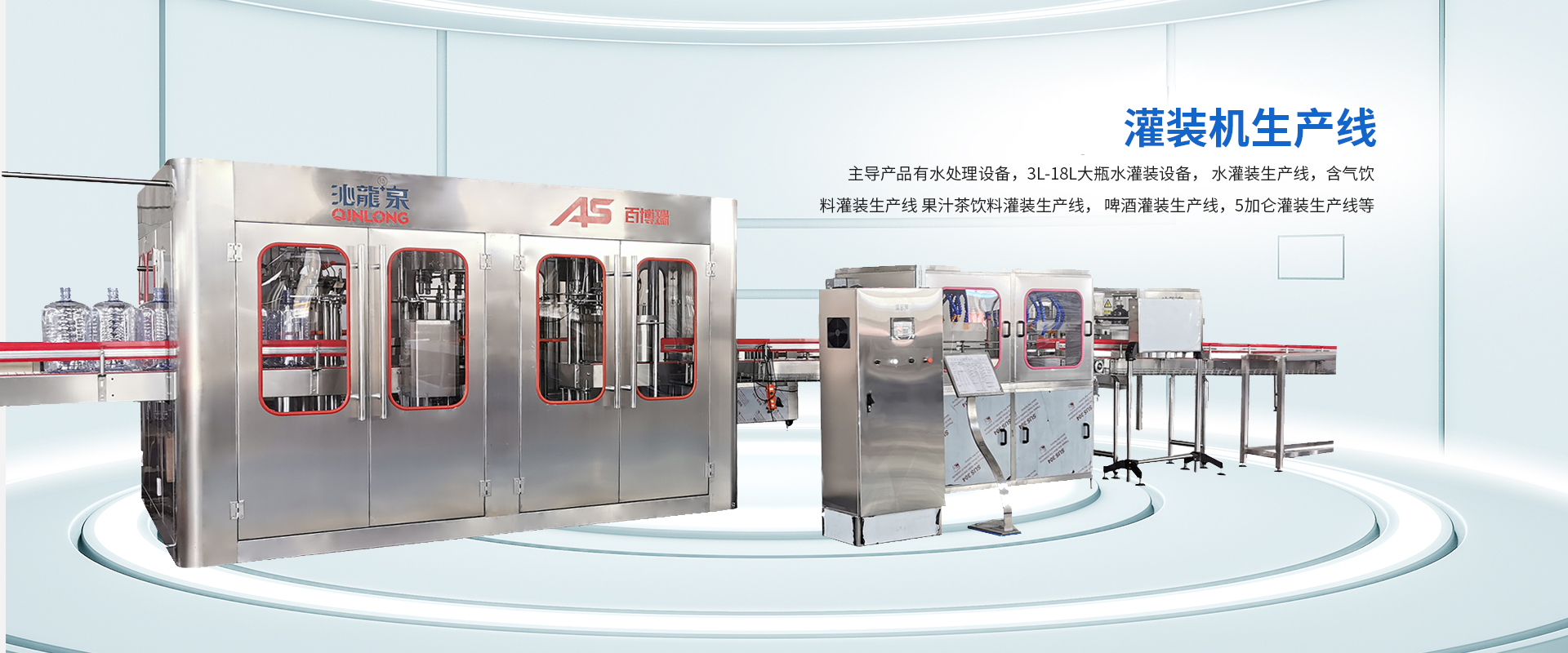 公司主導(dǎo)產(chǎn)品有水處理設(shè)備,3L-18L大瓶水灌裝機(jī)設(shè)備, 水灌裝生產(chǎn)線(xiàn),含氣飲料灌裝生產(chǎn)線(xiàn), 果汁茶飲料灌裝生產(chǎn)線(xiàn), 啤酒灌裝生產(chǎn)線(xiàn),5加侖灌裝生產(chǎn)線(xiàn)等。
